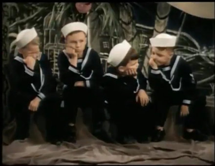 Repost of an update, October 2018. Colorized and better pics of Alfalfa and now also some other boy in long (Navy) sailor suits and sailor's hats.