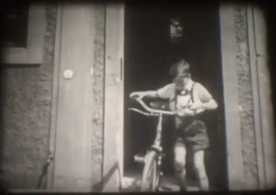 –Comment: At least one boy in buckskin Lederhosen with H-style suspenders also cycling.
